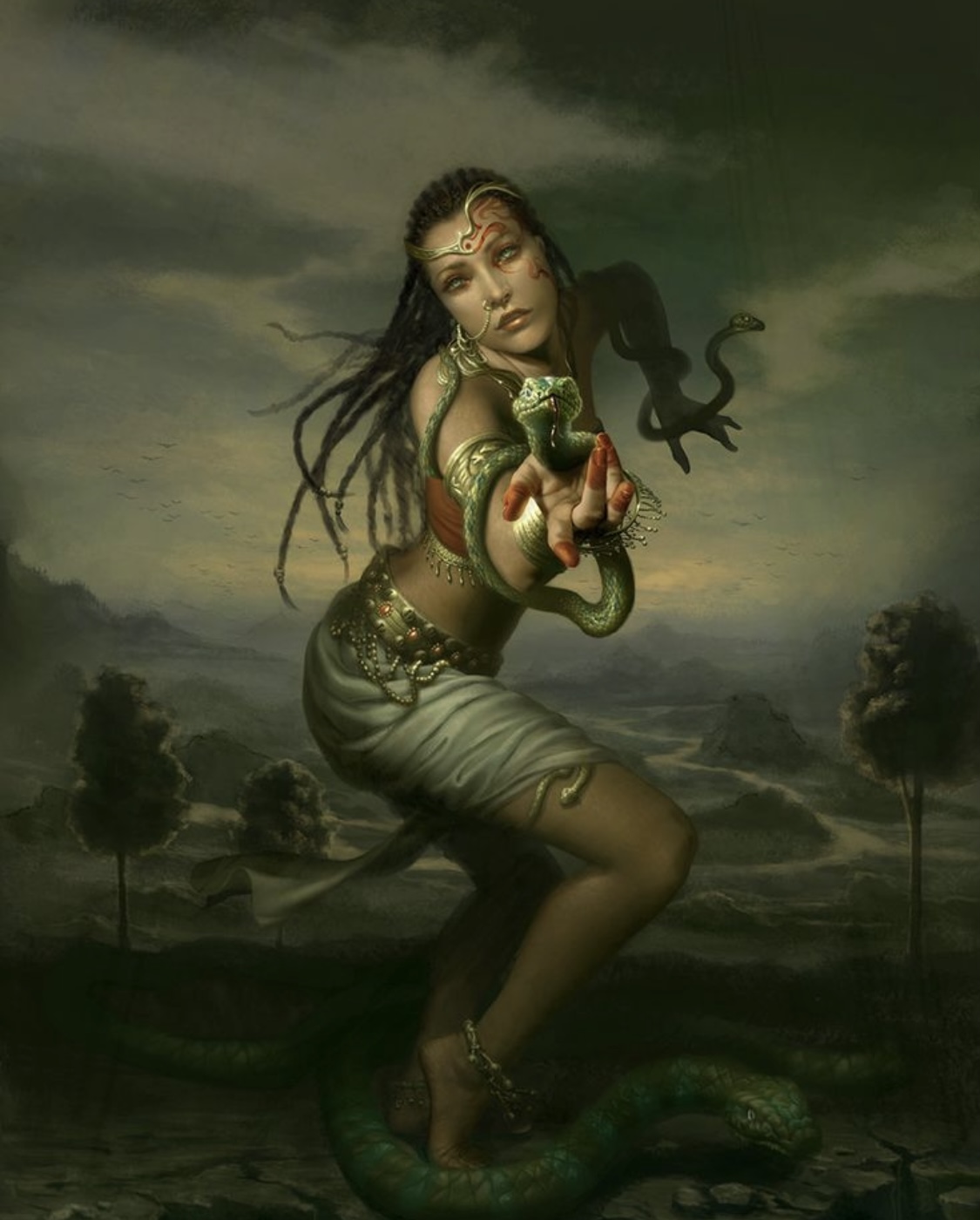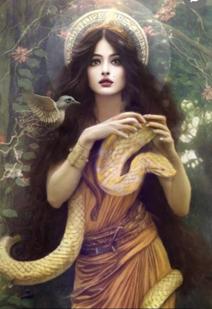 În multe tradiții spirituale, șarpele este considerat o expresie a energiei feminine sacre și un arhetip al intuiției și al misterelor divine. În Hinduism, de exemplu, Kundalini este nimeni alta decât zeița Shakti, forța creatoare primordială, energia vitală care dă viață întregului Univers. Ea este simbolizată de un șarpe încolăcit la baza coloanei vertebrale, care, odată trezit, se ridică prin chakre, unind materia și spiritul, instinctul și iluminarea. Trezirea acestei energii reprezintă o transformare profundă a ființei, conducând la extinderea conștiinței și la manifestarea puterii interioare feminine în forma ei cea mai pură și divină.