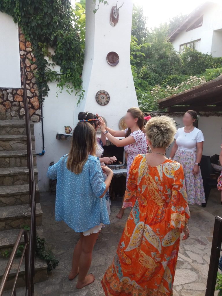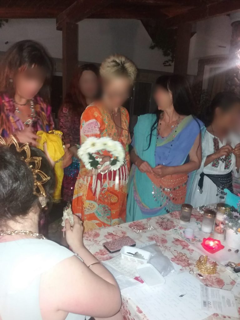 Ultima zi, a fost ziua Femeii Câmpie. A fost cea mai relaxantă zi dintre toate, cu multă veselie și celebrare. Am lucrat pe includere, pe rana de suroritate și astfel conflict apărut cu o seară in urma și-a găsit rezolvarea acum. Fetele au creat un șirag de mărgele al surorilor, punând cu fiecare mărgea o binecuvântare pentru cercul de femei. Am realizat un ritual de adorare și împodobire a lor ca zeițe, încheind cu o ceremonie de onorare a liniei strămoșești feminine a fiecăreia dintre ele.
