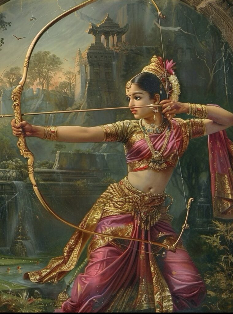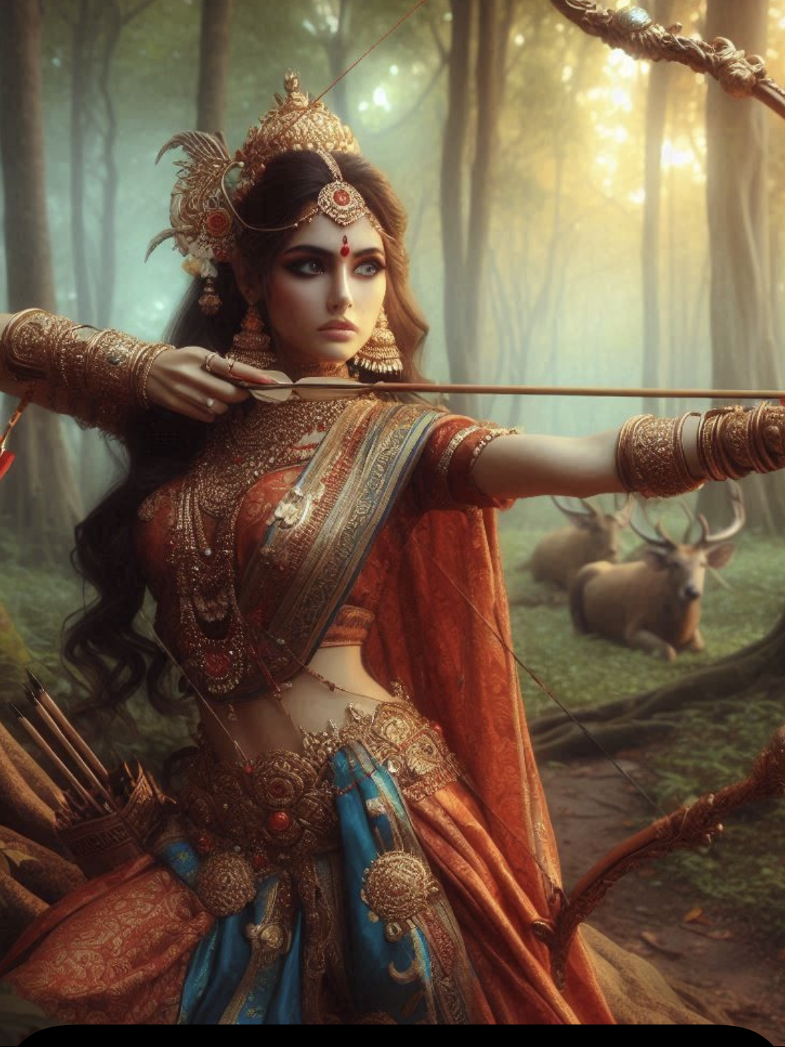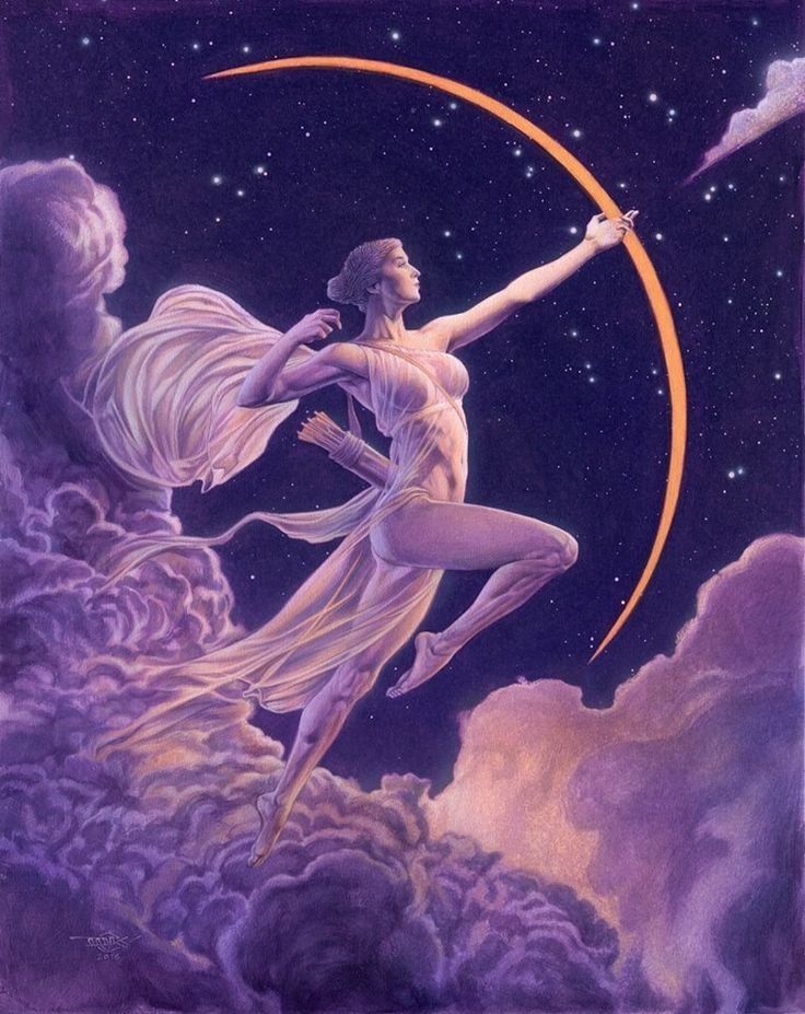 Din centrul inimii ei, având obiectivele setate, își mânuiește Arcul și Săgeata Sacră. Tragerea înapoi a săgeții în arc simbolizează predarea ta în fața voinței divine. Trimiterea săgeții către țintă este, de fapt, încrederea că această este calea dreaptă și sigură către obiectivul tău.
